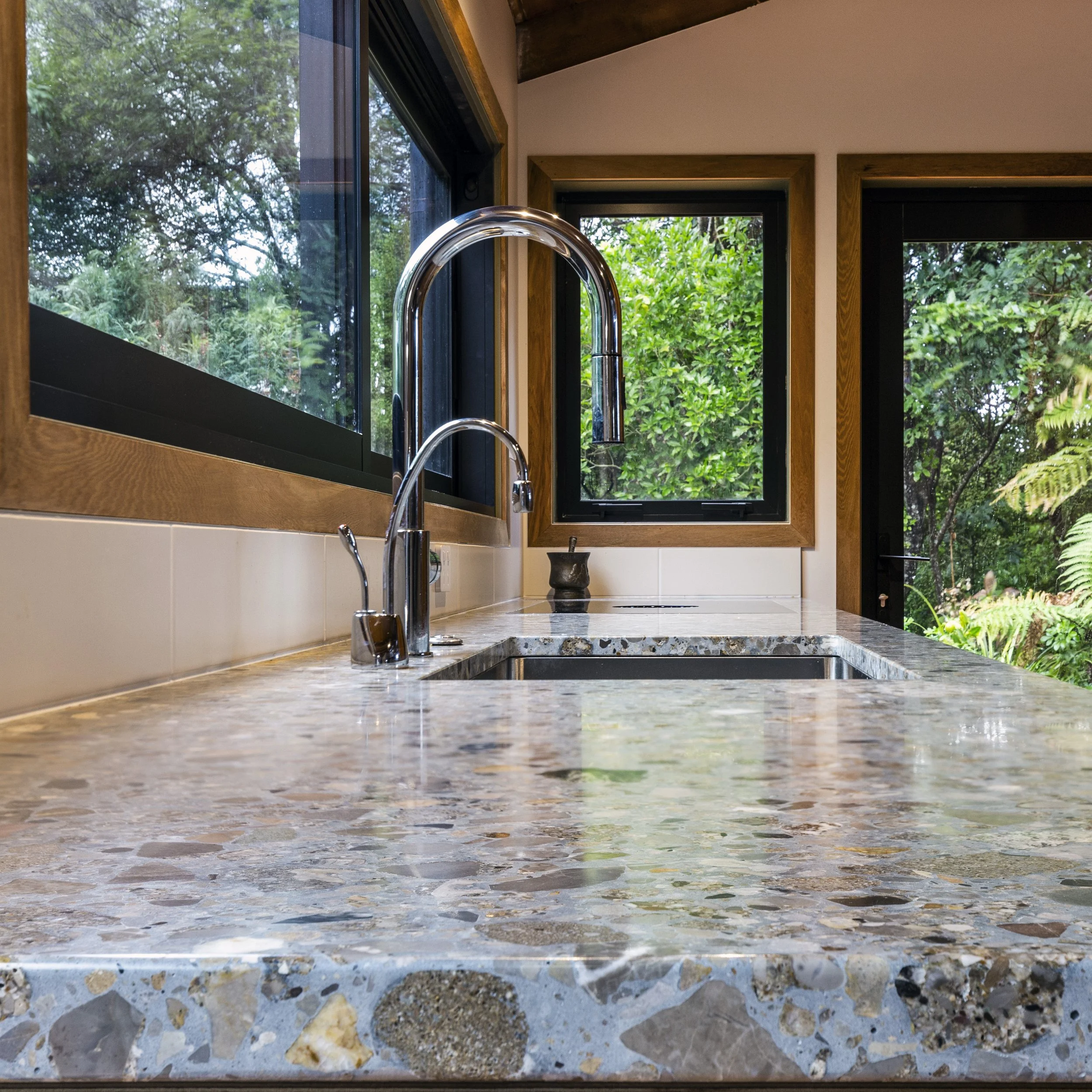 “We recently installed a new kitchen. Our architect’s vision was a minimalist galley design using natural materials for our lakeside, native bush surroundings and new terracotta flooring. Graft Joinery brought this to life with stunning native NZ Rimu veneer joinery and terrazzo bench-tops that exceeded our expectations.